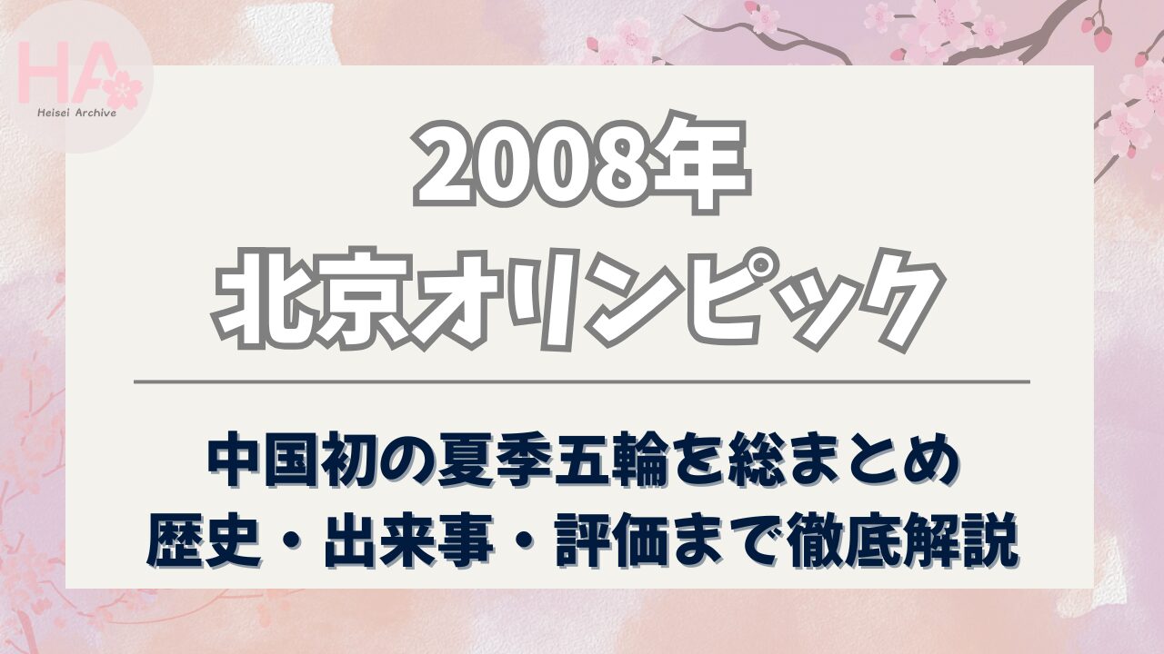2008年の北京オリンピックは、平成時代の後半を代表する世界的な象徴イベントでした。中国が国家の威信をかけて挑み、世界中がそのスケールと演出に驚嘆。47億人が見守る中で、スポーツ、建築、文化、そして政治までもが一体となった大会は、まさに「平成のショーケース」と呼ぶにふさわしいものでした。